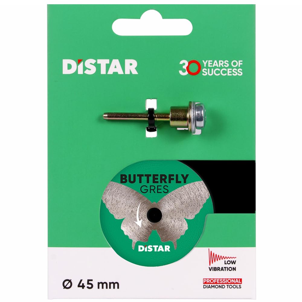 Small in size, big on results The Butterfly 2" Diamond Blade by DISTAR delivers jeweler’s precision and clean, stable cutting for ceramic tile and porcelain gres. Engineered with a solid 0.6 mm diamond layer, this blade produces a minimal cut width and a flawless edge, far superior to standard galvanic discs. Its rigid yet maneuverable 2-inch (45 mm) design prevents deviation while allowing delicate work in tight spaces. Ideal for buttons, hatches, covers, furniture, and decorative elements, the Butterfly blade is designed for use with water cooling, ensuring durability, long-lasting sharpness, and consistent performance. Characteristics Diameter: 1.7 in. Thickness: 0.6 Cooling: With Water Bore Diameter: 5,8/3,2-3,0F Purpose: Ceramic, Porcelain gres Brand: Distar