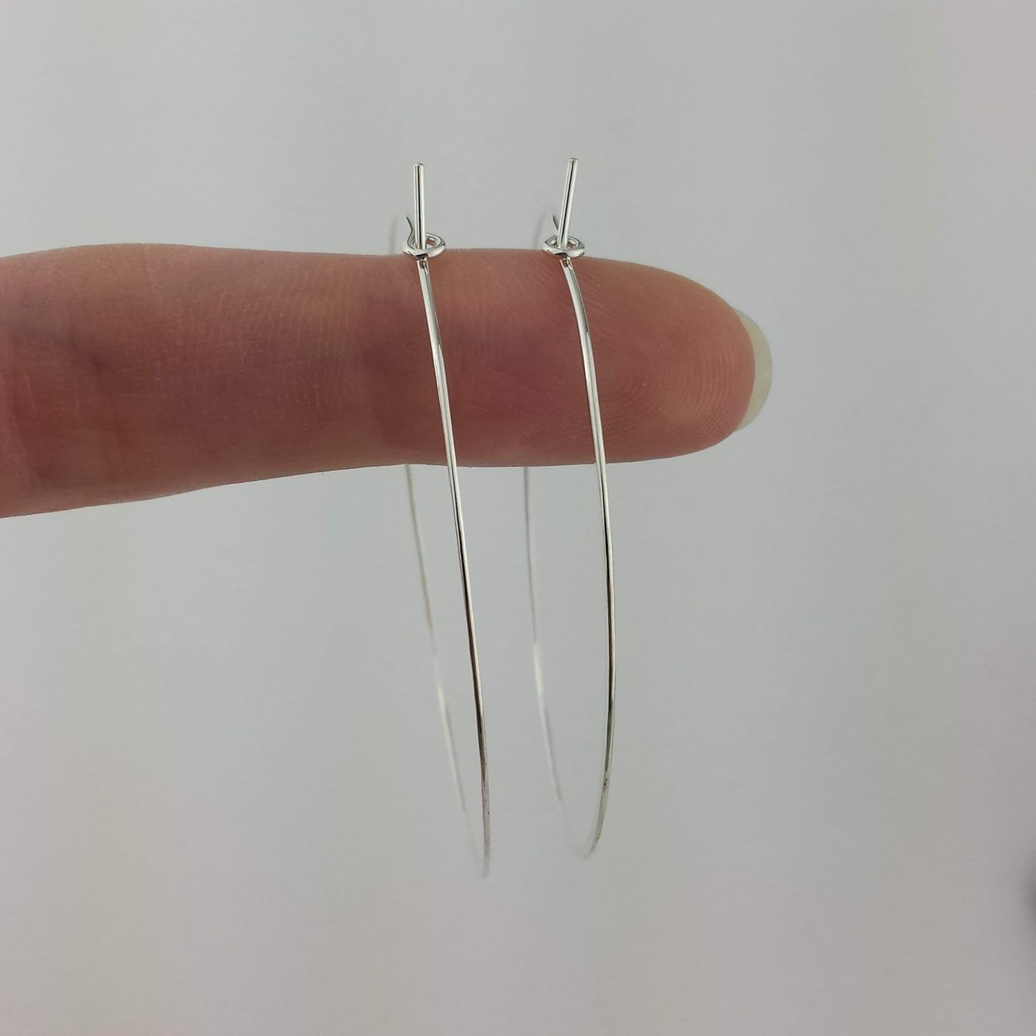 Delicate and lightweight, these lightly hammered hoop earrings are individually made by myself in the USA in my private studio. Thin Argentium Sterling Silver wire is used for these earrings, which means they will wear comfortably in the ear and have increased tarnish resistance compared to traditional Sterling Silver. If you do notice your earrings tarnishing (sometimes starts with a slight yellow hue on Argentium), a quick wipe with a silver polishing cloth will bring your earrings back to their original bright shine. Due to the delicate nature of the thin wire, the larger size earrings will require a gentle hand to ensure the hoop does not bend out of shape. The large hoops come with two sets of complimentary rubber backers to help decrease the risk of losing the earrings during wear. The backers slide on easily with a slight twisting motion and gentle pressure.