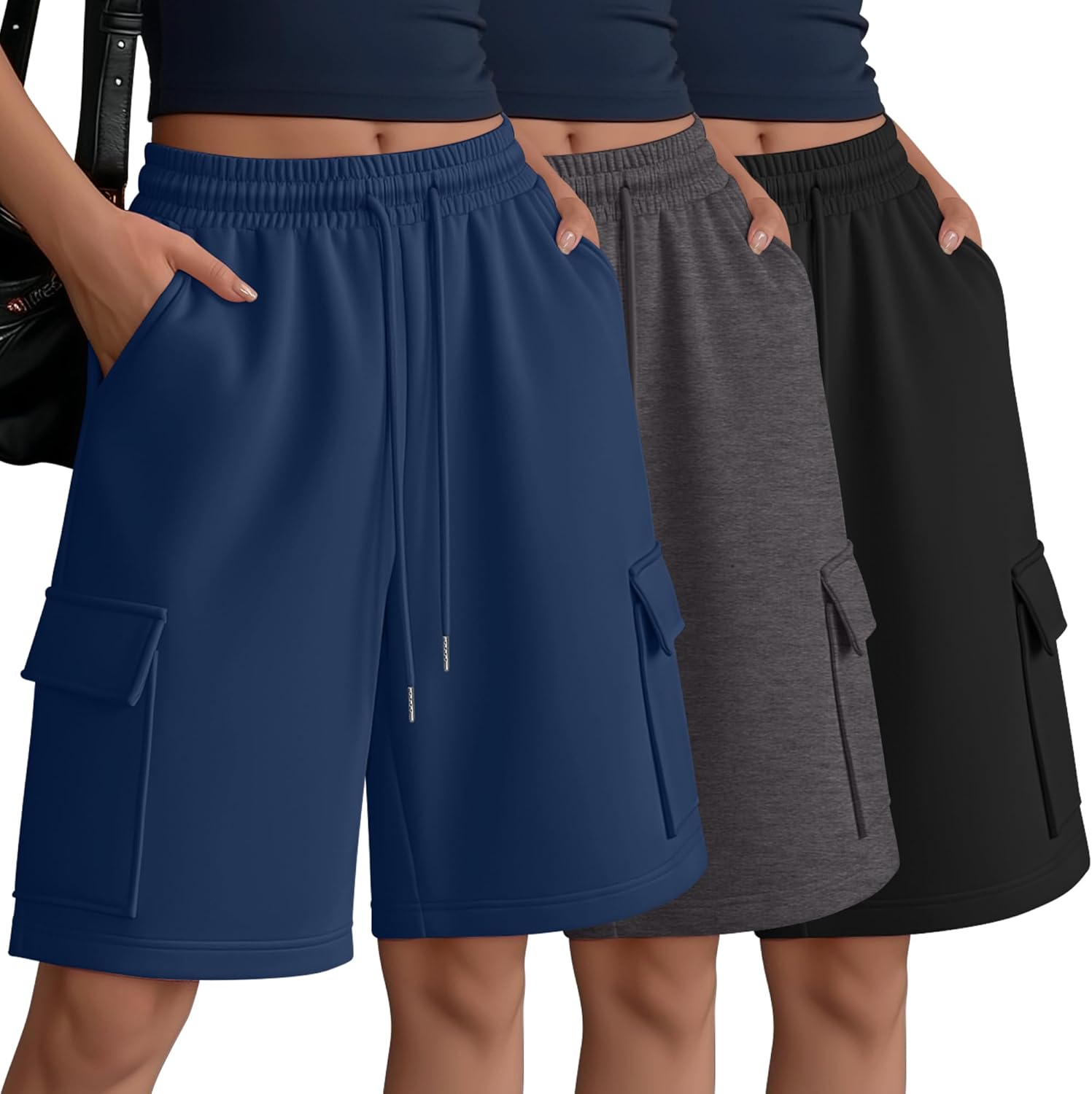 Features: Crafted from a soft fabric, our women's baggy sweat shorts combine an adjustable elastic drawstring with four convenient pockets. They offer a perfect balance of minimalist style, everyday comfort, and practical functionality. These women bermuda shorts with pockets are your perfect companion for spring and summer. They effortlessly transitions from active pursuits like yoga, running, hiking, and gym workouts to daily life, making it ideal for travel, streetwear, lounging at home, and casual everyday style. Fabric: 75% Polyester, 25% Cotton Notes: Manual measurement, please allow slight errors on size. The color may exist a slight difference due to different screen display.