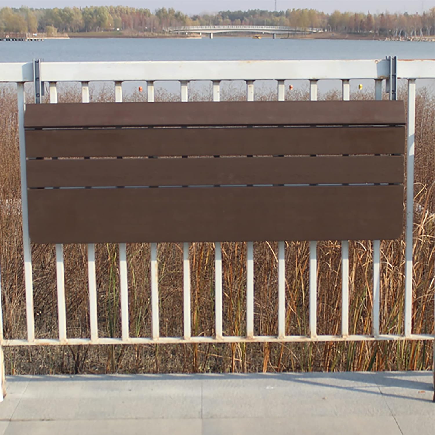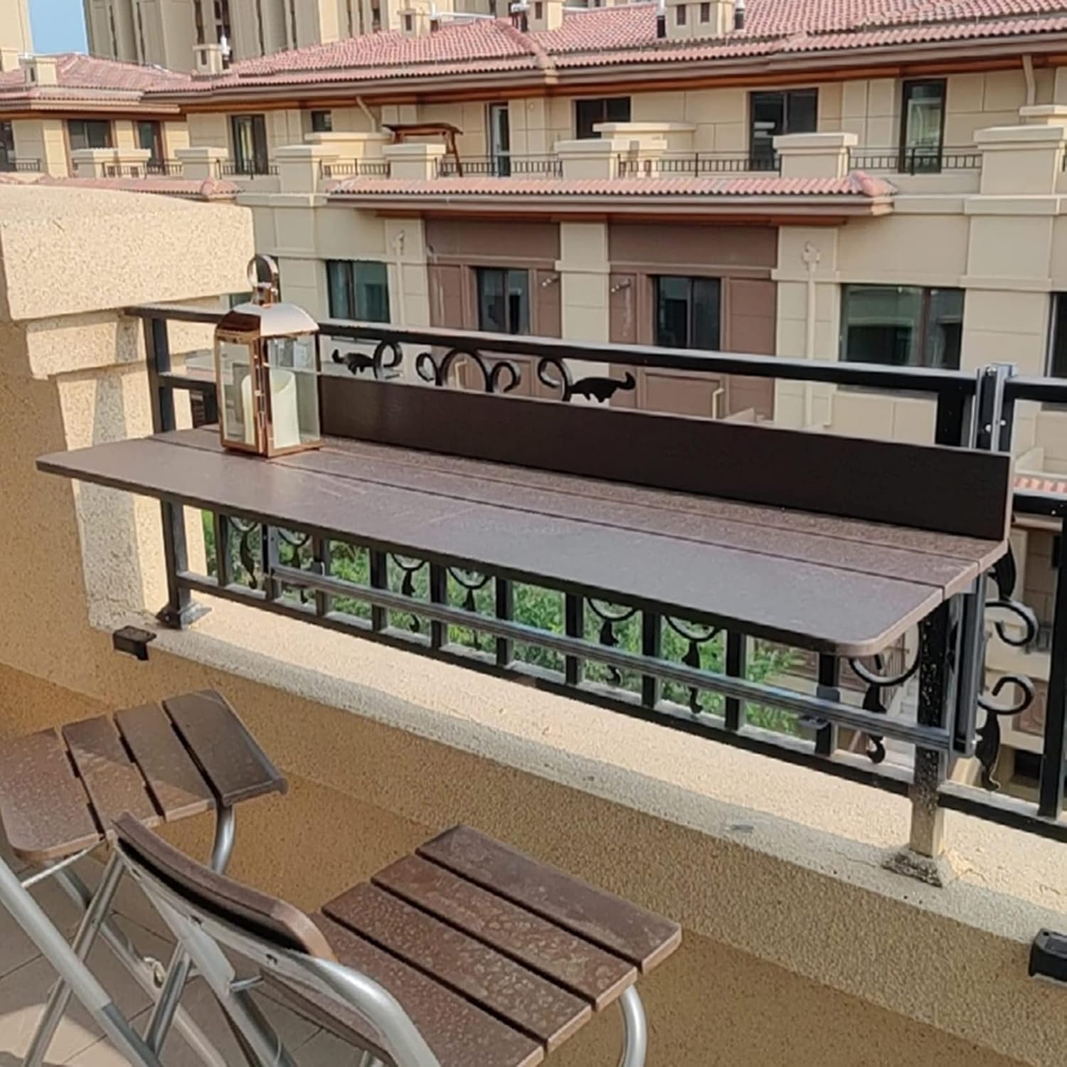 Transform your outdoor space with our versatile Balcony Bar Table, designed to enhance your relaxation and entertainment experiences. Crafted with a sturdy aluminum alloy frame and a stylish stainless steel surface, this table combines durability with an elegant brown finish, making it a perfect addition to any balcony or patio setting. The 1.5cm imitation wooden desktop is treated with high-temperature polyester powder for a sleek, weather-resistant finish, ensuring it withstands the elements while maintaining its aesthetic appeal. With a unique folding design that allows the table to adjust to a 90-degree angle, it easily fits into tight spaces, making it ideal for both small and large balconies. Our adjustable table offers five different height levels, providing you with the flexibility to customize your setup for dining, drinks, or social gatherings. Whether you’re enjoying morning coffee or hosting an evening get-together, this table adapts to your needs, creating the perfect atmosphere for any occasion. Installation is a breeze with our comprehensive package, which includes all necessary tools and three types of screws to accommodate various railing sizes (up to 5cm). Please refer to the installation diagram for guidance, ensuring a secure and safe setup on your balcony. We strive to provide top-notch customer service. While slight variations in size and color may occur due to manual measurement and lighting differences, your satisfaction is our priority. Should you encounter any issues or have concerns about your purchase, please reach out to us via email. Elevate your outdoor living experience with our Balcony Bar Table today!
