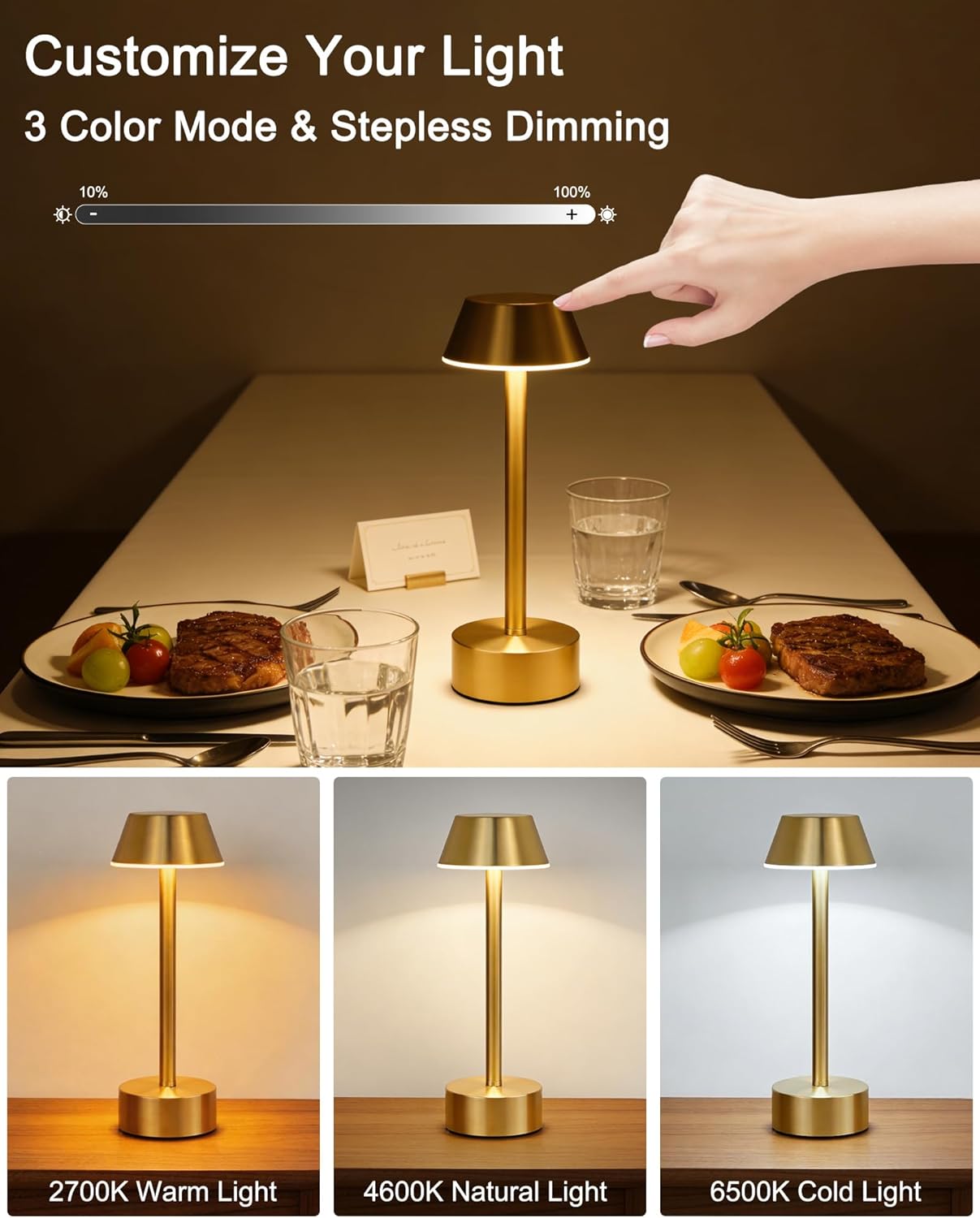 | Additional Features | 3-Way, Cordless, Dimmable, Portable, Rechargeable |