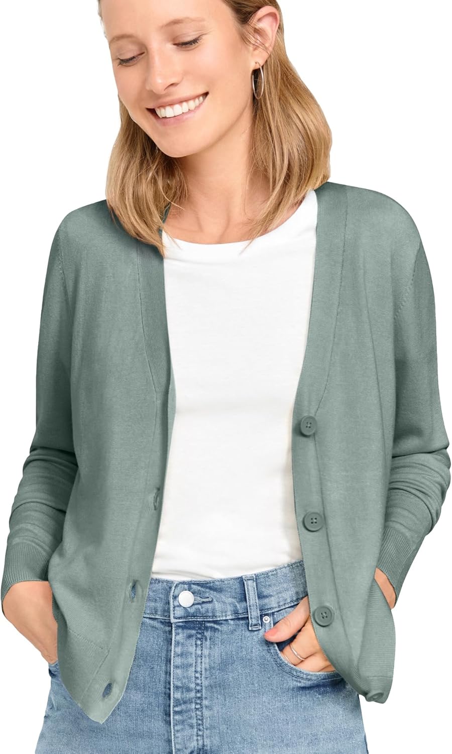 We’ll make this short and sweet — this hip-skimming sweater is a must-have for your cardi collection. Slightly shorter with a cute boxy cut that gives it spirited style. Fine gauge knitbr>V-neck placketbr>Relaxed silhouettebr>Approx. 26" hits mid-hipbr>Rayon/polyester br>Machine wash cold.br>Imported.