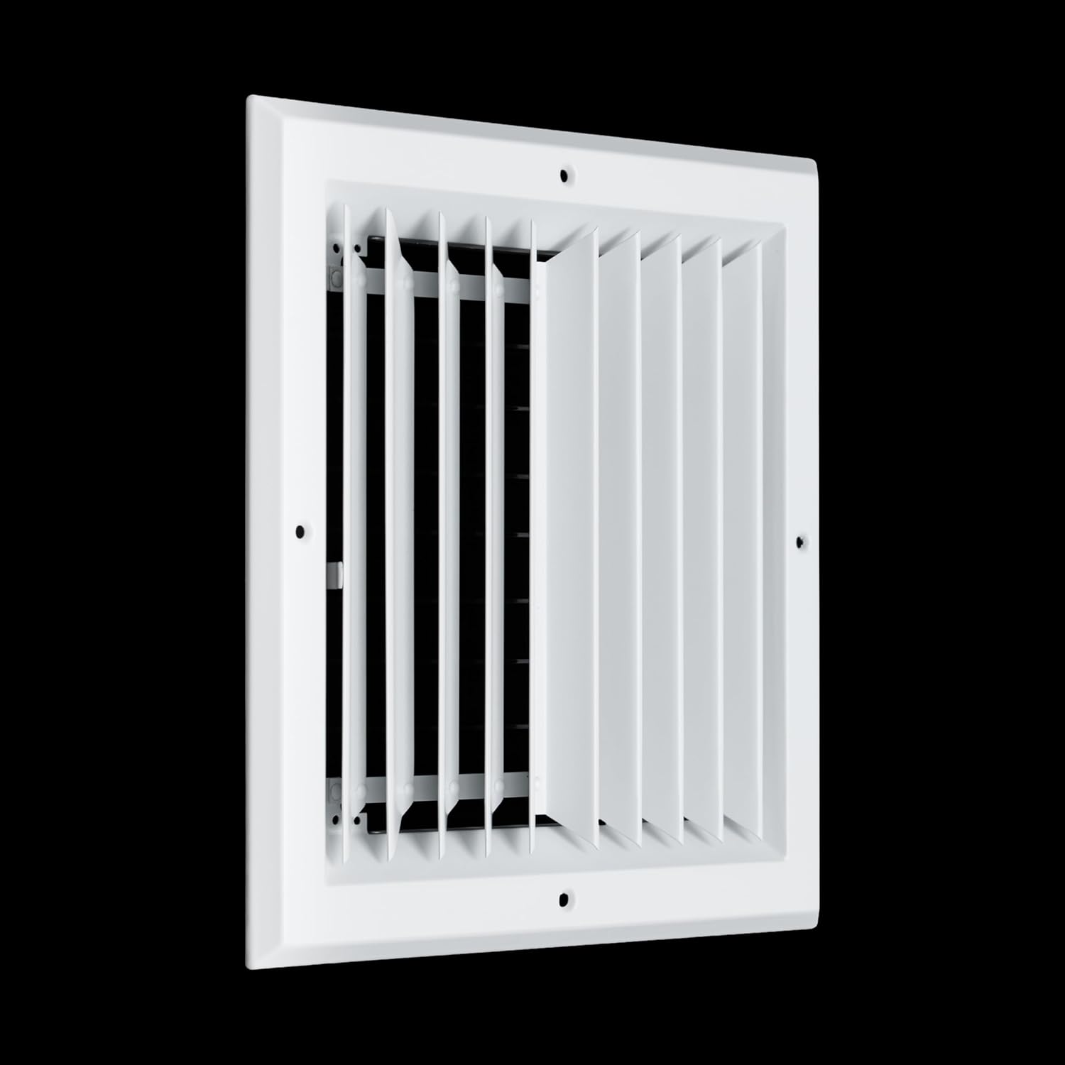 2 WAY Aluminum Supply Grille for 10x10 Duct Opening, White, Steel 1/2 inch spaced fins set at 40 degrees. Primary use: Side wall and ceiling. Screws are included with the system, standard. Durable white powder coated. Standard color is white (Ral9016).Aluminum construction, last long, rust proofโโ ๏ธ [๐๐ ๐ฃ๐ข๐ฅ๐ง๐๐ก๐ง] โ ๏ธโHOW TO MEASURE A GrilleAlways measure the size of the duct opening (the 'hole' in the duct/wall). Do not measure the entire size of the register itself. Size of the grille is; listed size +1.75-inch.Understanding Width & HeightIn a grille size, the first number always represents the width and the second one is the height. As an Example: If the hole on your wall/duct is 10 inches wide by 10 inches tall, order 10x10 option. For this particular product you're viewing at the moment, the hole on your wall/duct opening should be 10x10 duct opening. Click the 'Add To Cart' button now to order your Air Supply Grille!