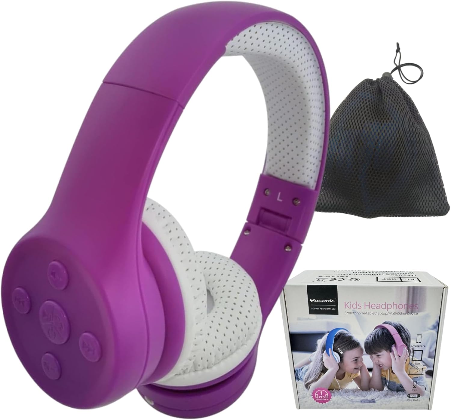 Yusonic is a brand special for kids headphones line. We think kids needs---safe,comfortable, active,easy operation, fun .. for different age. We try to make better and better products to your kids. Yusonic is Your kid’s favor sonic .. It would be nice and fun gift for school,travel,plane,holiday and birthday . This toddler bluetooth headphones is a wired and wireless dual purpose headphones for kids, using soft ear cusion and volume limiting technology to ensure that your child's ears are not harmed for long-term use. It also includes a music sharing jack, which can be used in series with multiple of our same headphones or our wired headphones tm690 , allowing your child to share music and happiness with other children. This product adopts a five button design, even without the need for a manual, I also understand how to operate it very well. The headband has a retractable function and can be used for children aged 3-16 Specifications Kid Bluetooth version: V5.0 Volume limited: 93dB Play time: up to 30 hours Kid Bluetooth Headphones connection distance: up to 10M Charging time: 1-1.5 hours Battery capacity: 250mAh Impedance: 32 ± 5Ω Driver diameter: 30mm Frequency range: 20-20KHz Microphone: microphone function support Connections: 3.5 mm Cable length: 1.2M Product Weight: 148g Package: 15.5 * 16.5 * 6.5