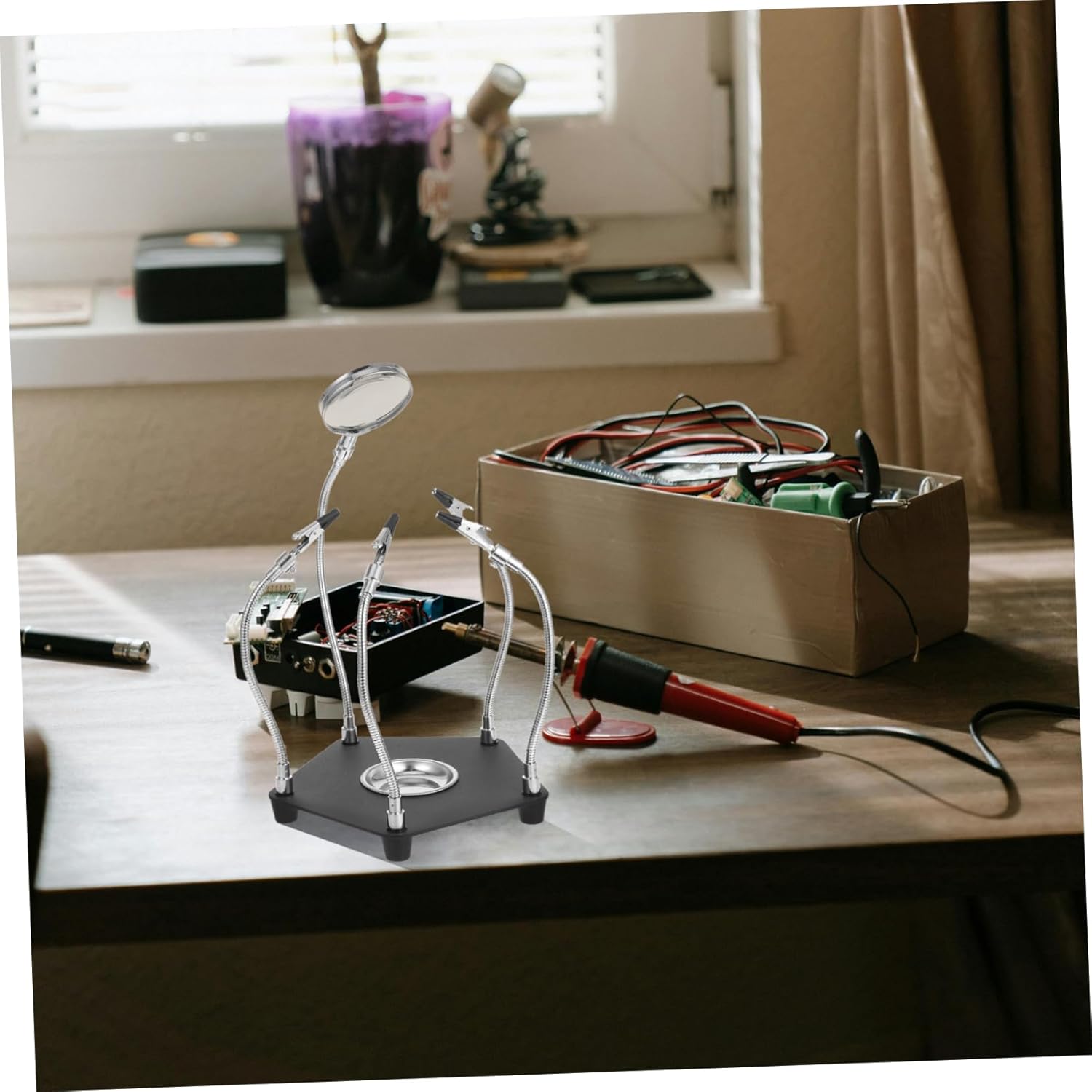 Package Include 1 welding station Characteristics -Sturdy iron holder: the soldering iron stand ensures your tool stays securely in place, minimizing the risk of accidents and enhancing safety circuit board soldering kit -Bright LED illumination: features an LED light that provides bright and focused illumination, helping more efficiently in any lighting condition soldering circuit boards repairs -Size:26.00X18.30X18.00cm/10.22X7.19X7.07in soldering iron kit -Builtin magnifier: the integrated magnifying glass offers enhanced visibility of small details, improving precision and overall work quality soldering helping hand -Versatile application: ideal for various uses such as electronic repairs, soldering, and circuit board support, making it a versatile addition to your toolkit soldering parts accessories -Color:Multi adjustable helping hand -Construction: made from stainless steel, this tool is designed to withstand regular use, providing reliable support for all your projects helping hands tool -Material:Iron stainless steel glass helping hands with magnifierGoods Informationelectric soldering iron stand Its robust construction and multifunctional design make it suitable for a wide range of applications, from soldering and welding to crafting and jewelry making.third hand solder aid Whether you are a technician or a DIY enthusiast, the TE-806 Repair Auxiliary Clamp with LED Light Magnifier is an indispensable tool in your toolkit.soldering clamp Enhance your work efficiency and safety with this reliable and versatile tool