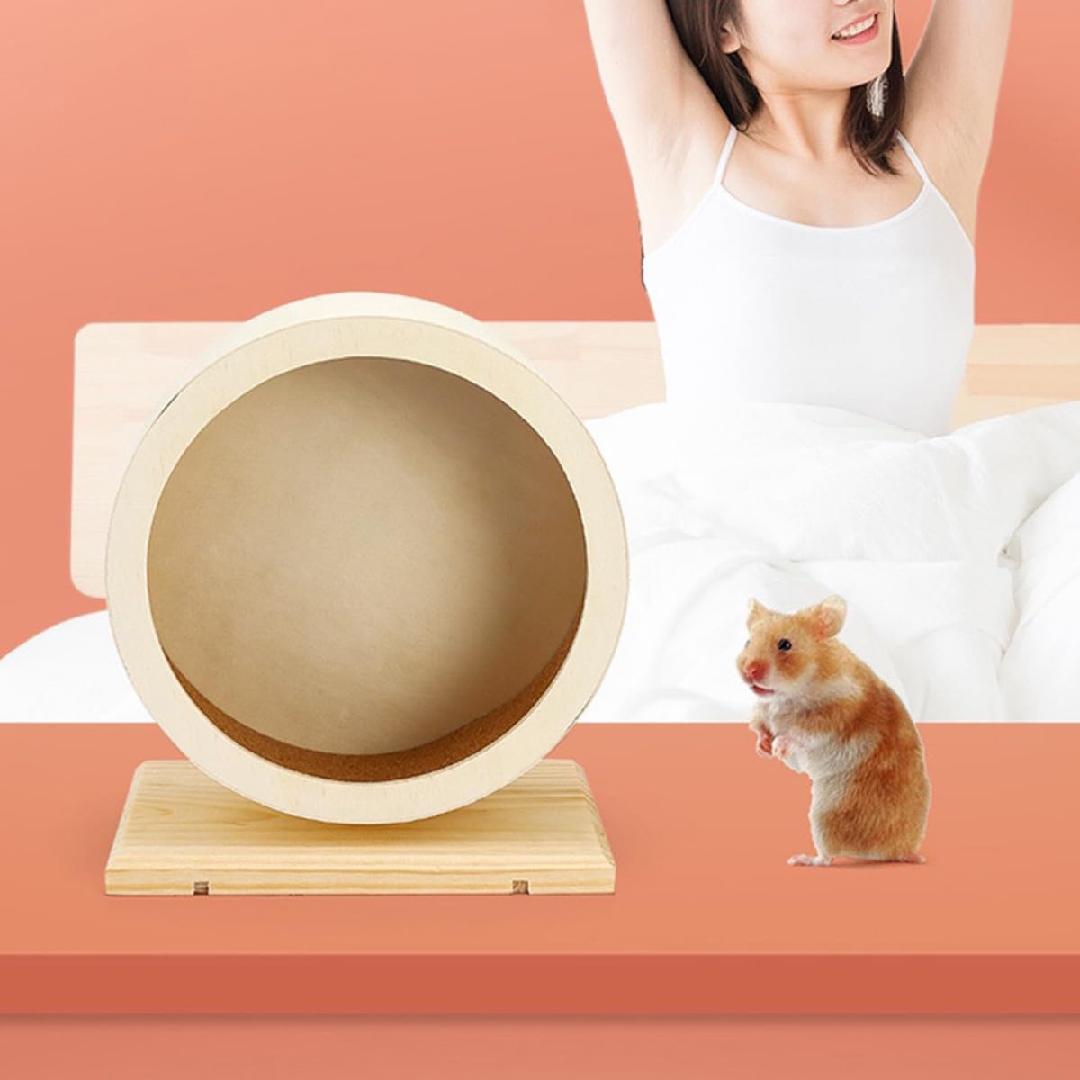 Package List 1 x Hamster Running Wheel Characteristics -Product Info:Silent bracket -Color:Beige -Material: Wood -Large outer diameter: 29CM/11.4in, inner diameter 28CM/11.02in, Base width: 14CM/5.51in, running wheel width: 9.5CM/3.73in, inner width: 8.6CM/3.38in, overall height: 32CM/12.59in super-silent hamster exercise wheels -Size: 29.00X9.50X32.00cm/11.40X3.73X12.58in - Keep them healthy and active, and help them with their environment in an entertaining way wheels for pet cage. - An choice for your friends or families who have a small pet small hamster wheel. - A healthy way to the and stress of your small pets, them from chewing their cages or other furniture hamster sports running wheel. - Small size design is suitable for Chinchilla, Guinea Pig, hamster, etc. - Mute function design, your hamsters play at night, does not affect the owner's sleep Hamster Wheel .Goods Descriptionsmall hamster wheel This is a funny silent hamster exercise wheel , it will bring your little hamster endless running fun, also bring you a quiet night even if your hamster on the race track to run and the running wheel is spinning.silent wheel hamster Your small pets will love this exercising wheel , it helps them to broken boredom and enrich their nighttime
