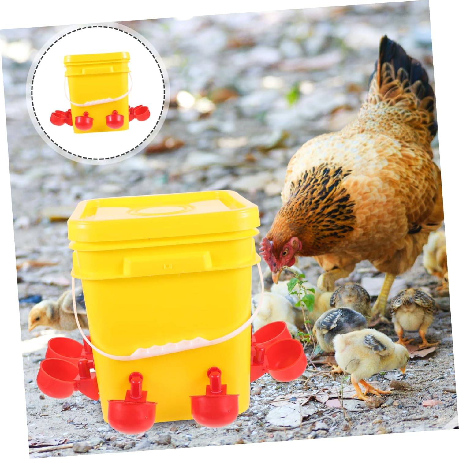 Package Include 1 x bucket 8 x chick watering bowl Characteristics -Capacity:12L chick feeder -Size:29.00X25.00X22.00cm/11.40X9.82X8.65in plastic chicken feeder -Color:Yellow poultry chicken's food bucket -Material:PE poultry chicken's food jar - and multi-functional, the food feeder can hold both dry and wet food. It is in preventing food from getting dirty and is easy to use and feeder. - It has a simple design, but very in use, giving you a using experience automatic chick feeder. - A , , simple and convenient provide feed for poultry brings great convenience chick feeders. - Food feeder can be placed stably and easily, and will not occupy too much space, very simple and useful pet feeder. - Easy to and wash, the poultry food feeder is very simple to fill and use, convenient and plastic chick feeder.Goods Descriptionfeeder With this item, it can bring much convenience to you.poultry feeding container Suitable for chicken, or some other poultry, with anti-splash.poultry automatic food feeder There is a chick feeder, which is made of PE material, and reusable for use.chicken feeder They are creative and to use.automatic poultry feeder Easy and convenient to use, professional design for poultry