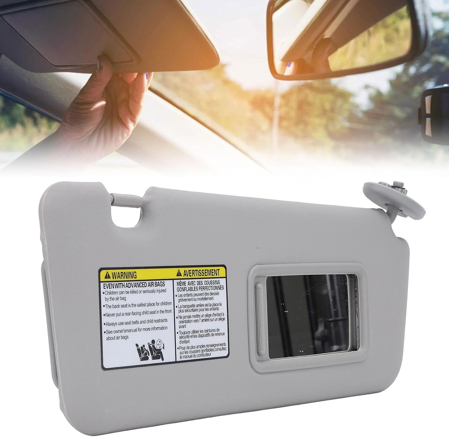 Spec: Item Type: Sun Visor Material: ABS + Glass Position: Front Right, Passenger Side Functions: with Makeup Mirror Fitment: Replacement for 2004-2005 Package List: 1 x Sun Visor