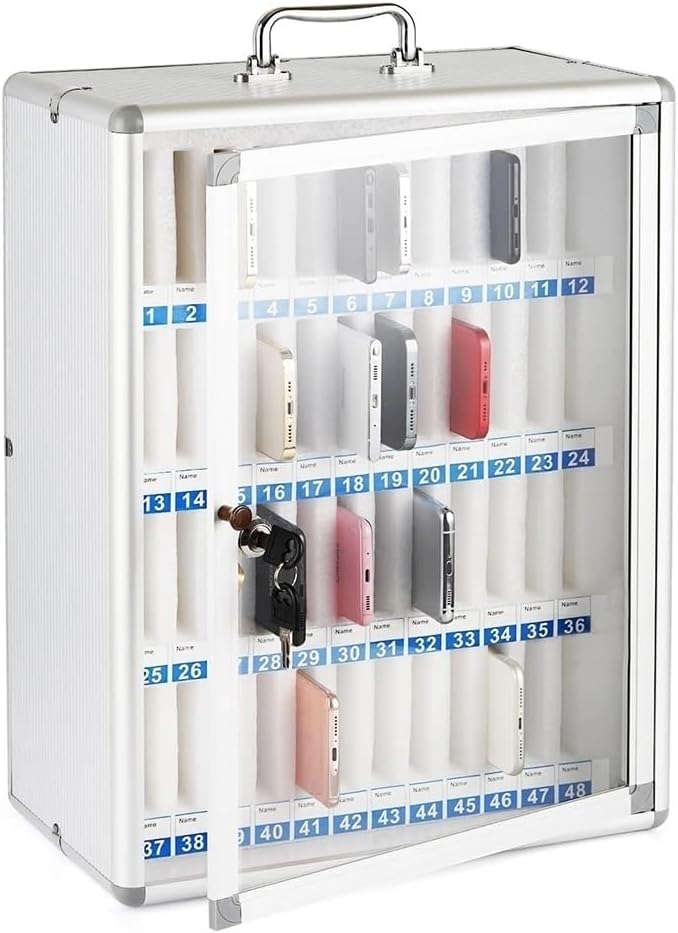 Introducing our Mobile Phone Organizer, designed to keep your smartphone safe and secure while enhancing your workspace. This innovative organizer features multiple slots, allowing you to store your phone efficiently without the worry of slips or drops. Crafted from high-quality aluminum alloy, our Mobile Phone Organizer is built to last. The integrated pearl cotton compartment adds an extra layer of protection against accidental bumps and drops, ensuring your device remains in pristine condition. Whether you’re at home, in the office, or on the go, this organizer is the perfect solution to prevent clutter and keep your smartphone accessible. Available in a sleek silver finish, our Mobile Phone Organizer comes in various sizes to suit your needs: - **12 Slots**: 21*19*35cm (8.2*7.4*13.7in) - **24 Slots**: 27*19*37cm (10.6*7.4*14.5in) - **36 Slots**: 29*19*48cm (11.4*7.4*18.8in) - **48 Slots**: 38*19*48cm (14.9*7.4*18.8in) - **60 Slots**: 38*19*59cm (14.9*7.4*19.2in) This Mobile Phone Organizer is an ideal choice for busy professionals, students, or anyone looking to streamline their space. Its thoughtful design not only enhances functionality but also adds a touch of elegance to your environment. Please note that our measurements may have a slight variation of 1-2CM. Actual product colors may differ due to lighting and monitor settings. Elevate your organization game with our Mobile Phone Organizer today!