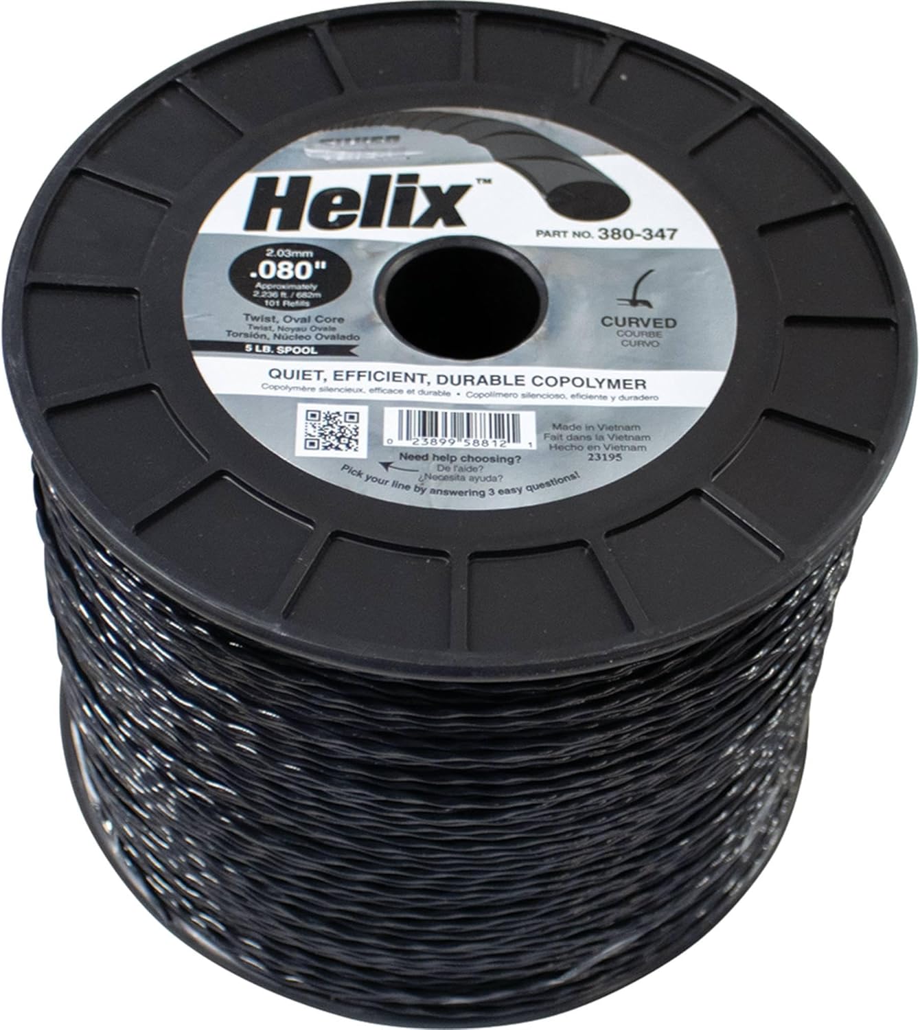 Universal Fit String Trimmer Applications: Fits Echo SRM-225, SRM-230, SRM-235, GT-225, and all Echo trimmers that accept 0.080 inch trimmer line Fits Stihl FS 38, FS 45, FS 55R, FS 56 RC, and all Stihl trimmers that accept 0.080 inch trimmer line Fits Husqvarna 128LD, 223L, 324L, and all Husqvarna trimmers that accept 0.080 inch trimmer line Ryobi, Troy-Bilt, DeWalt, Craftsman, Kobalt, Greenworks, and all other trimmer brands Universal fit for any gas, battery, or electric string trimmer with head accepting 0.080 inch line Cross Reference Part Numbers: Oregon: 20-119 (Platinum SuperTwist 3 lb) Oregon: 20-118 (Platinum SuperTwist Donut) Rotary: 12174 (Vortex Twist) Specifications: Diameter: 0.080 inches Shape: Twist Color: Black Material: Durable copolymer Spool weight: 5 pounds Approximate length: 2,236 feet Packaging: Branded spool Durable Twist Helix Trimmer Line for Residential and Commercial Use Professional-grade helix trimmer line for all string trimmers that accept 0.080 inch line including Echo, Stihl, Husqvarna, and Ryobi. This 5 pound branded spool contains approximately 2,236 feet of durable copolymer line for extended trimming. The twisted oval profile creates a slicing action that cuts grass and weeds efficiently while producing less noise than round line. The twist shape generates less drag on the motor for improved engine performance. The copolymer construction blends two materials for resistance to stretch and breakage. The helix design resists breaking away when contacting concrete and hard surfaces. An excellent choice for lawn care professionals and homeowners. ⚠ WARNING: This product can expose you to chemicals which are known to the State of California to cause cancer, birth defects, or other reproductive harm. For more information go to www.P65Warnings.ca.gov.