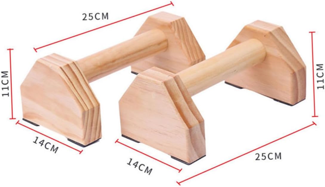 Package List 1 x Pair of Push-up Bracket Features - Size: About 25x14x11cm. - Color: Khaki. -Product Info:Parallel bar fitness machine - Material: Wood. - Put the by your ribs with your facing you to emphasize the triceps or place them wider than your shoulders to put greater emphasis on the fronts of the shoulders. - The bars also help you increase your range of motion, allowing you to into the push-ups push stand holder. - Wood is smooth and wear-resistant, the anti-slip and it has a cushioning effect, and it is durable and strong strength training equipment. - The wrists can be placed straight to increase distance push up frame. - equipment, easy to carry, simple and practical design push up brackets exercise.Goods Informationhome gym accessories Are you bothered by the increasing weight? Admire the good body shape of other people? Don't worry.push up frame You can also have a good figure by doing exercise.bracket fitness equipment The push-up frame we provide here can train your muscle and give you a good body shape gradually if you insist on taking exercise