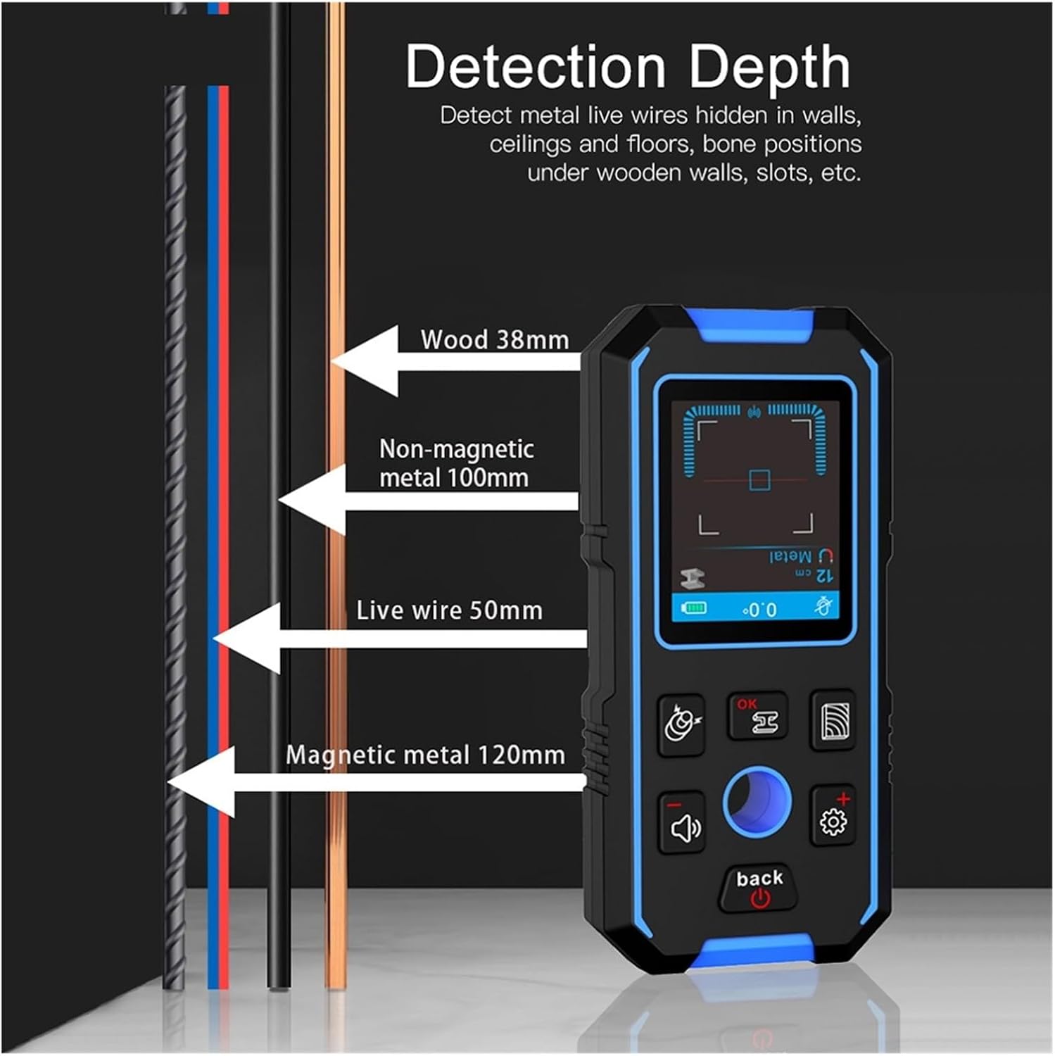 1. The wall stud finder can accurately and quickly find the edge and center of metal, studs, joists, pipes and live AC wires behind walls, floors and ceilings. Rapid detection saves users time and energy, making task completion easier.2. High visibility and comprehensive display, equipped with a bright backlit LCD display, which can show the center, edge and position of the detected studs and battery status.3. Multiple scanning modes, providing multiple scanning modes including stud scanning, depth scanning and metal scanning, allowing you to detect a variety of materials and depths.Features:The fuselage is made of engineering plastic, shock-proof, anti-falling, wear-resistant and long service life.High sensitivity sensor, center target positioning, high detection accuracy.2.4-inch display 240*320 resolution, plus backlight, even in low-light environments can see more clearly.3 kinds of detection mode design, metal detection mode, wood wall detection mode, live (AC) line detection mode, to meet your different work needs.Metal detection mode: with metal positioning, depth indication, metal attribute identification and other functions. It is mainly used for the detection of steel bars, metal keels and metal pipes in walls.Wood wall detection method: mainly used to detect the gypsum board wood beam in the wood partition wall, the wood beam/plastic pipe/hollow in the cement wall, detect the uniformity of the wood wall, and identify the bone and slot.Ac live wire detection mode: Mainly used to detect the AC live wire on the wall.Different materials have different depths of detection, wood 38mm, non-magnet metal 100mm, live wire 50mm, magnet metal 120mm.Equipped with voice broadcast function, you can broadcast the measurement results in real time, so that you have a good experience.Specifications:Name: Wall detectorMaterial: PlasticBattery :1 * 3V, 390mAh battery (inclusive)Item size :139