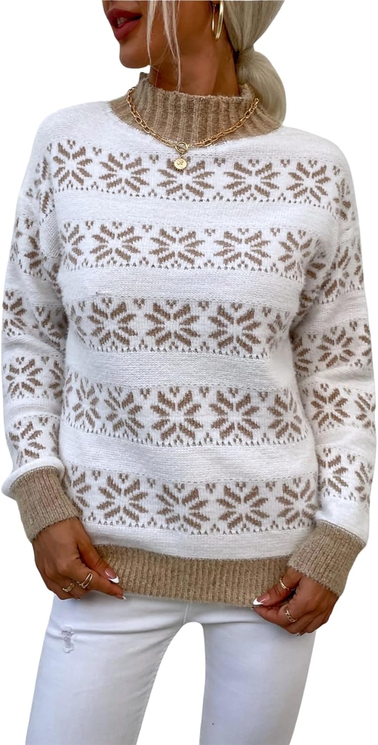 | Style Name | Regular Fit, Crew Neck, Long Sleeve, Snowflake Pattern |